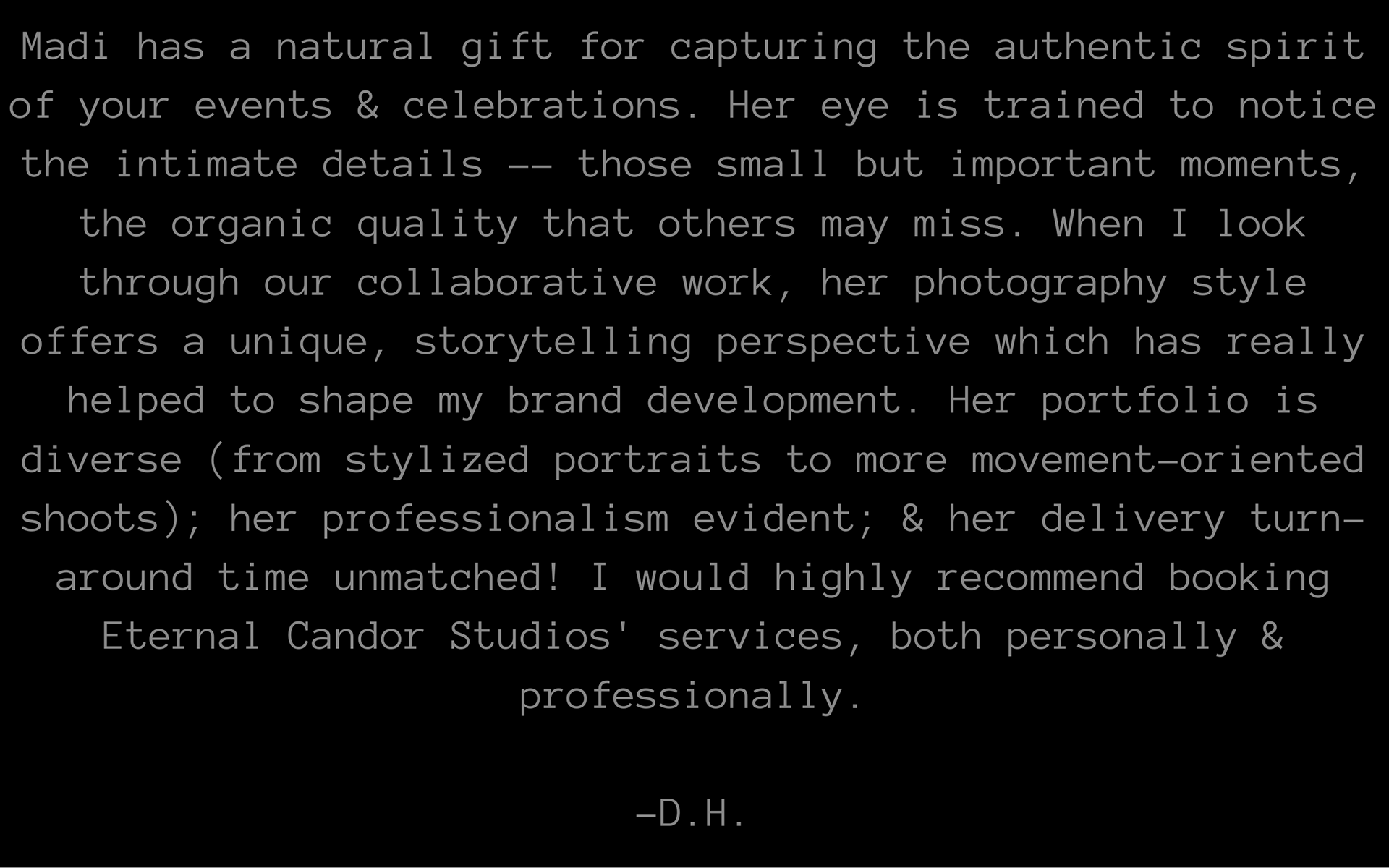 I'm Madi, a photographer based in St. Petersburg, Florida. Since I was little, I've always been passionate about authentic self-expression. I love to create a space where people feel safe to be themselves while remaining fully present in each moment. Whether working with individuals, couples, families, small businesses, or at events, each session is an opportunity to capture its unique essence.